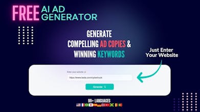 Say hello to ai ad creation: Just provide your website link, and our AI does the rest, crafting captivating ads and precise keywords. It's like having a marketing expert in your pocket, saving you time and boosting your online visibility effortlessly. | ![]() |